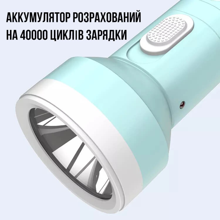 Яскраво світить протягом 3 годин та швидко заряджається від мережі завдяки вбудованій вилці. Аккумулятор розрахований на 40000 циклів зарядки.