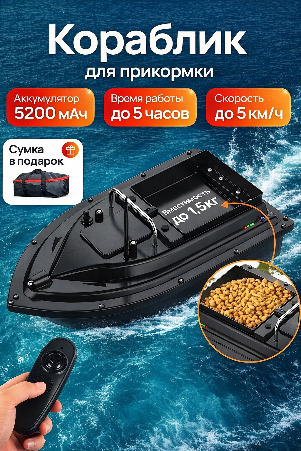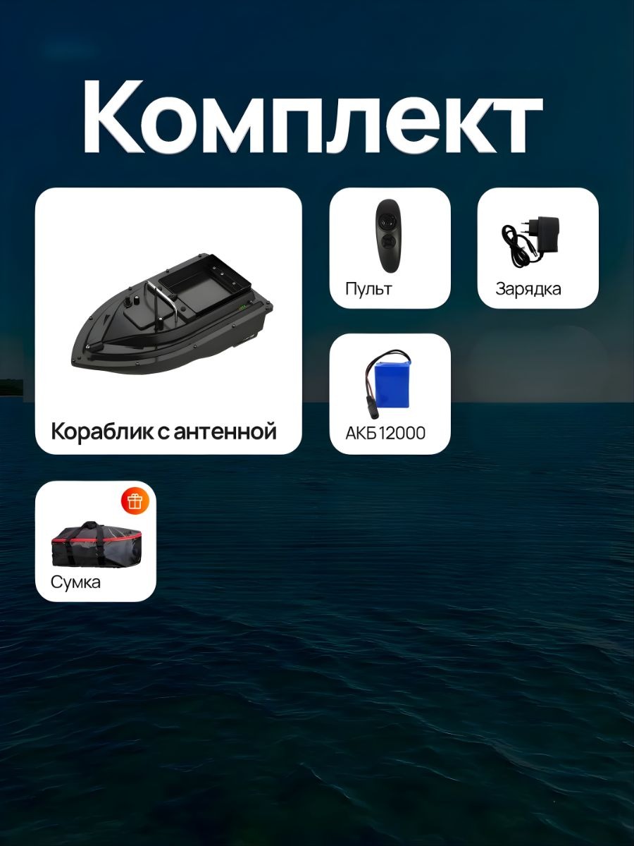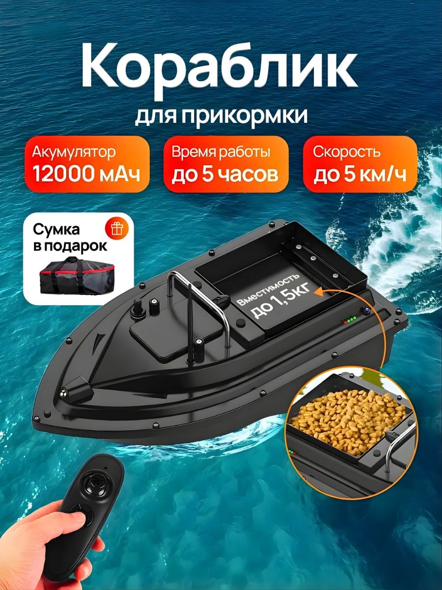 Аккумуляторный кораблик-кормушка для рыбалки + Сумка для карповых корабликов в подарок