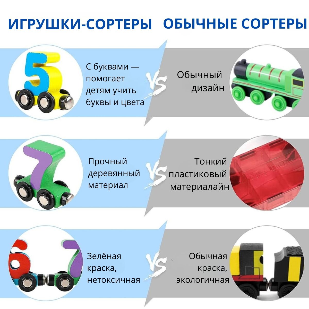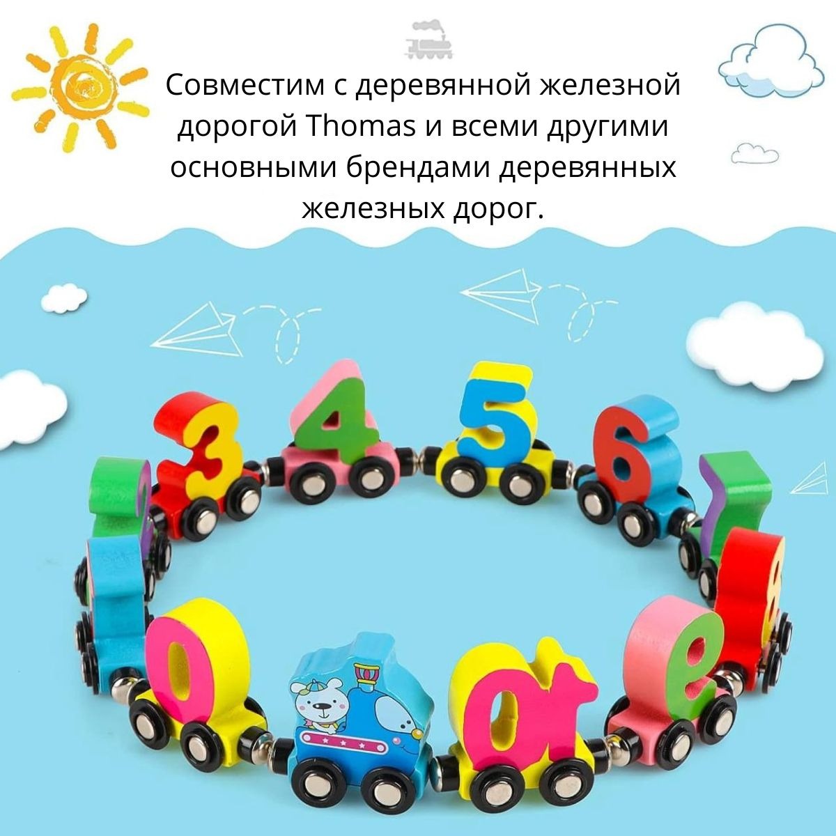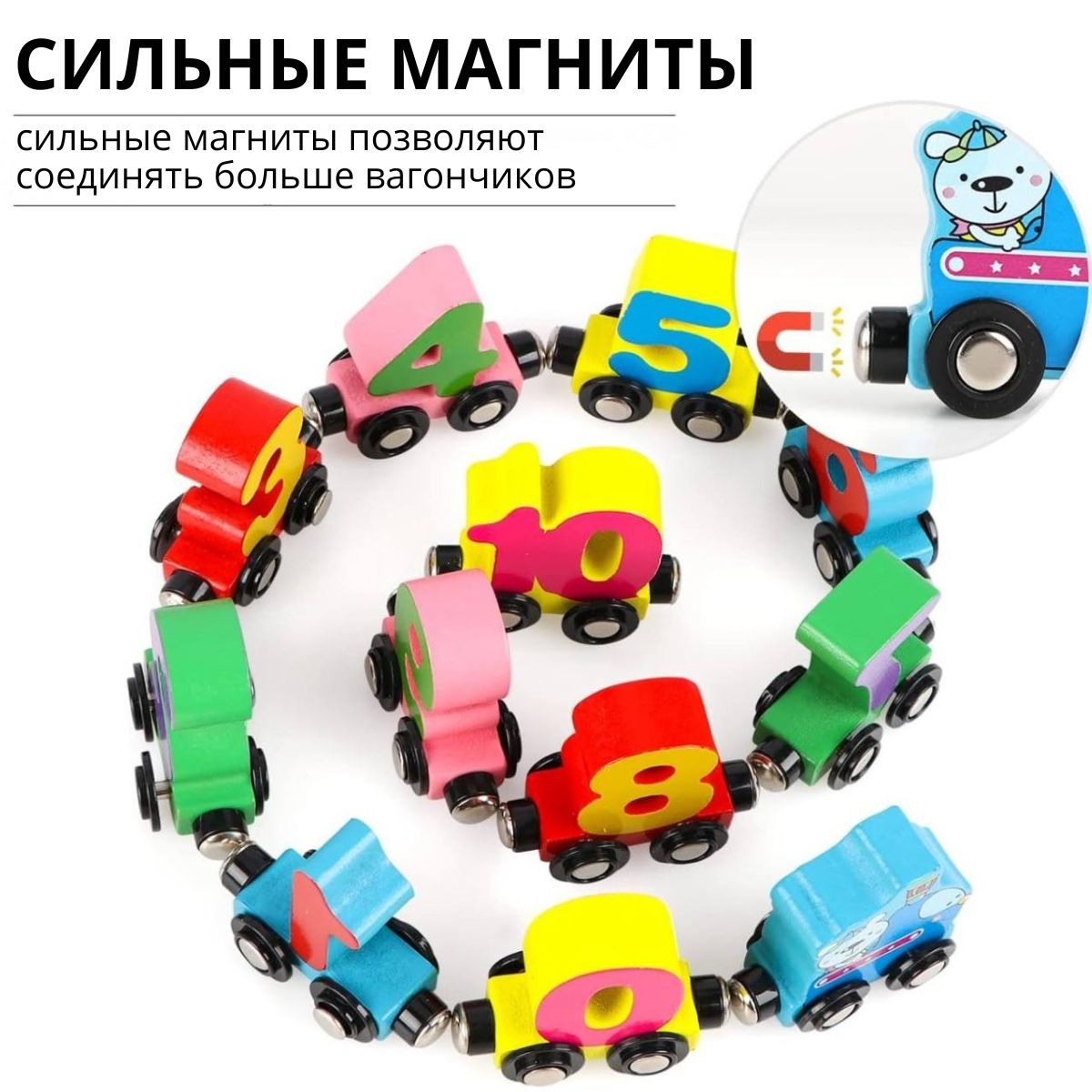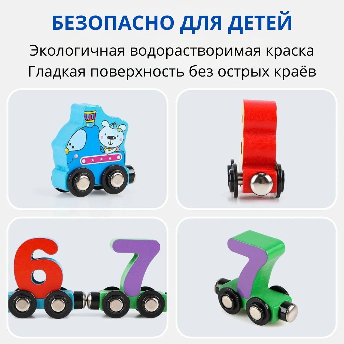 Деревянный магнитный поезд с цифрами. Развивающая игрушка для детей