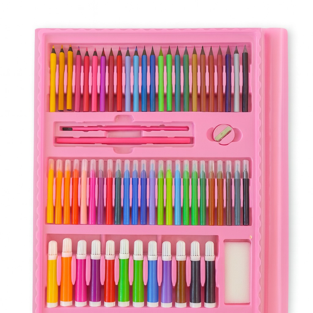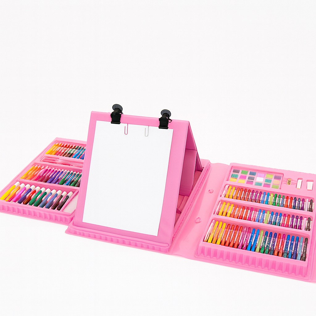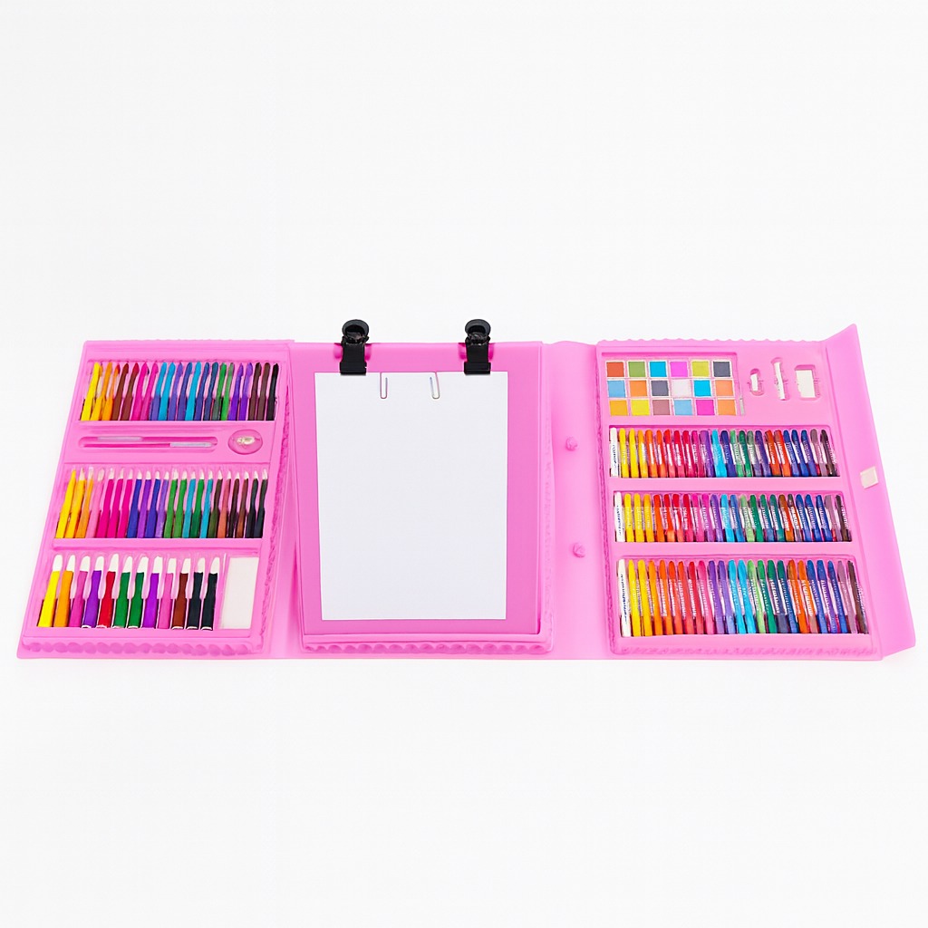 Детский художественный набор с мольбертом, 208 предметов, розового цвета