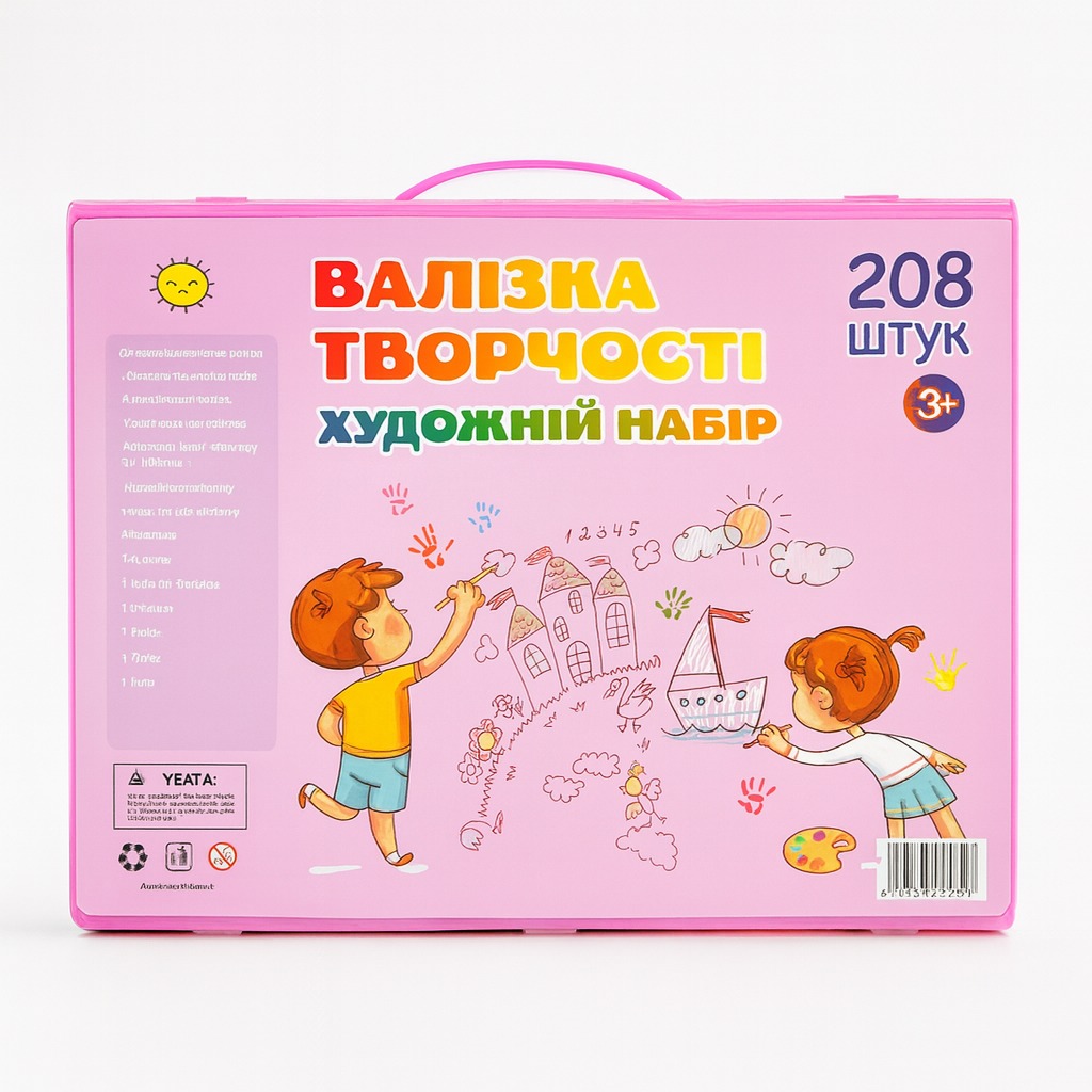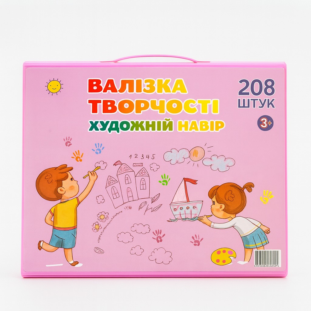Украинский детский набор для рисования с мольбертом 208 предметов розовый