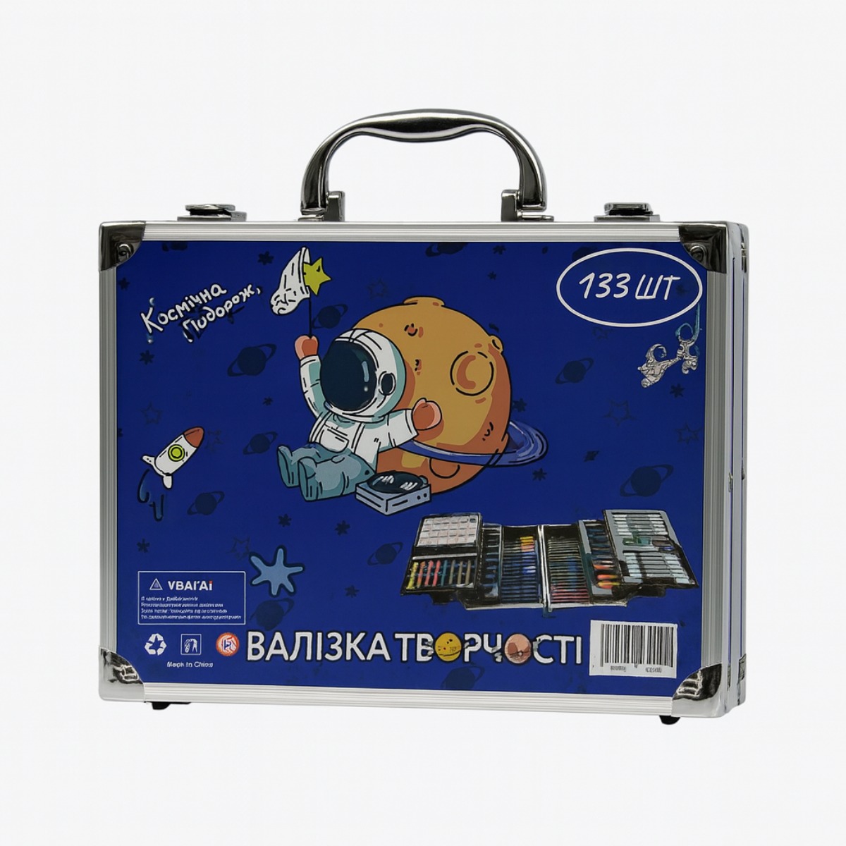 Детский набор для рисования и творчества в алюминиевом чемодане 133 предмета синий