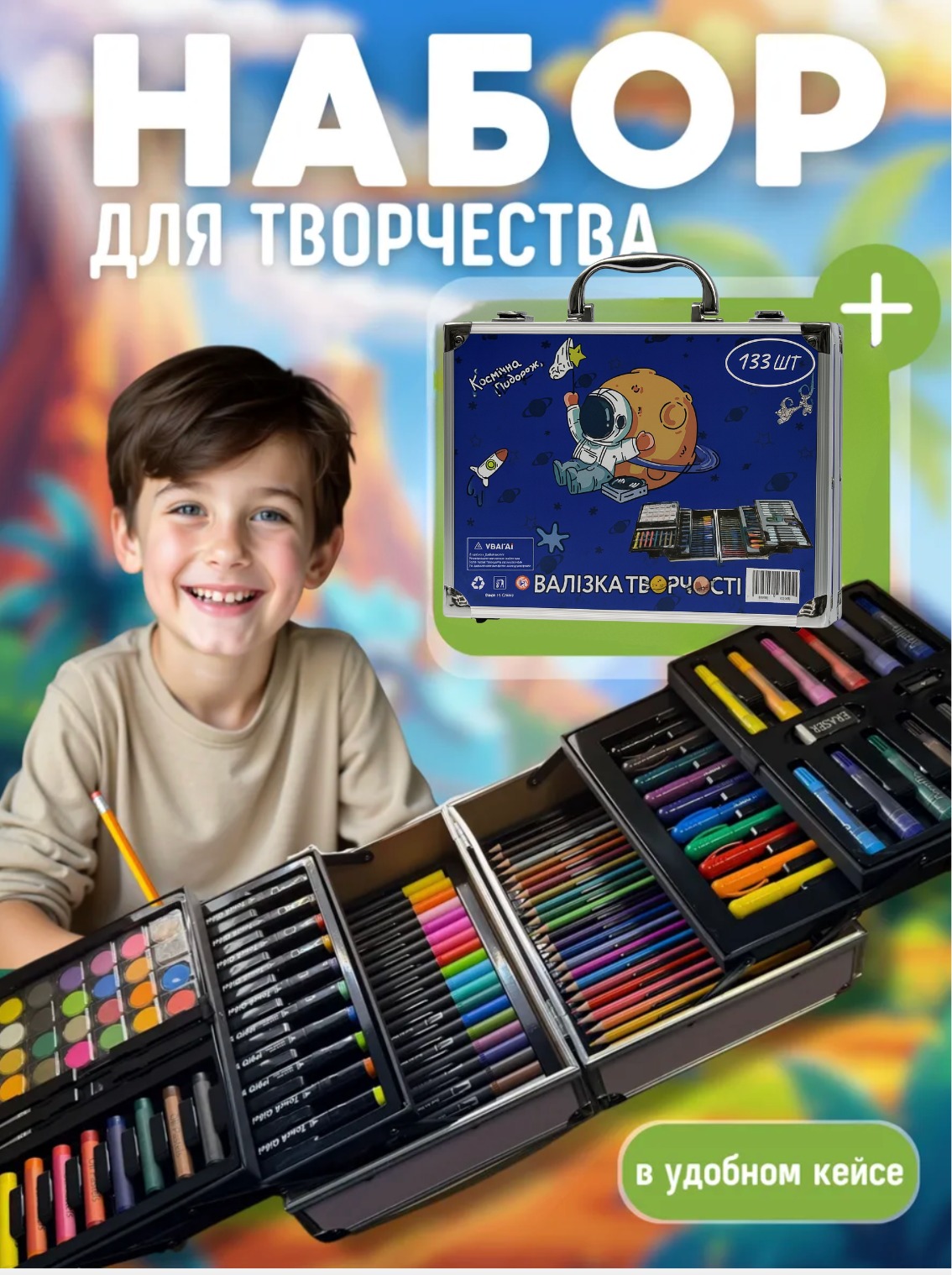 Мультинабор для творчества поможет ребёнку развить навыки рисования, активизируя его познавательную деятельность и позволяя реализовывать творческие идеи. Занятия рисованием благотворно влияют на развитие детского воображения, фантазии и сообразительности, а также способствуют развитию абстрактного мышления и координации движений. Регулярные творческие занятия помогают детям раскрывать свои творческие способности и повышать уверенность в себе, что делает создание искусства не только увлекательным, но и образовательным процессом.