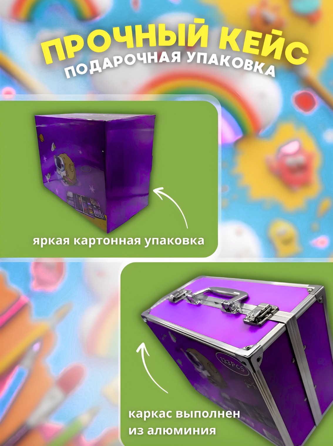 Детский набор для рисования и творчества в деревянном чемоданчике — идеальный подарок для маленьких художников и творческих детей.