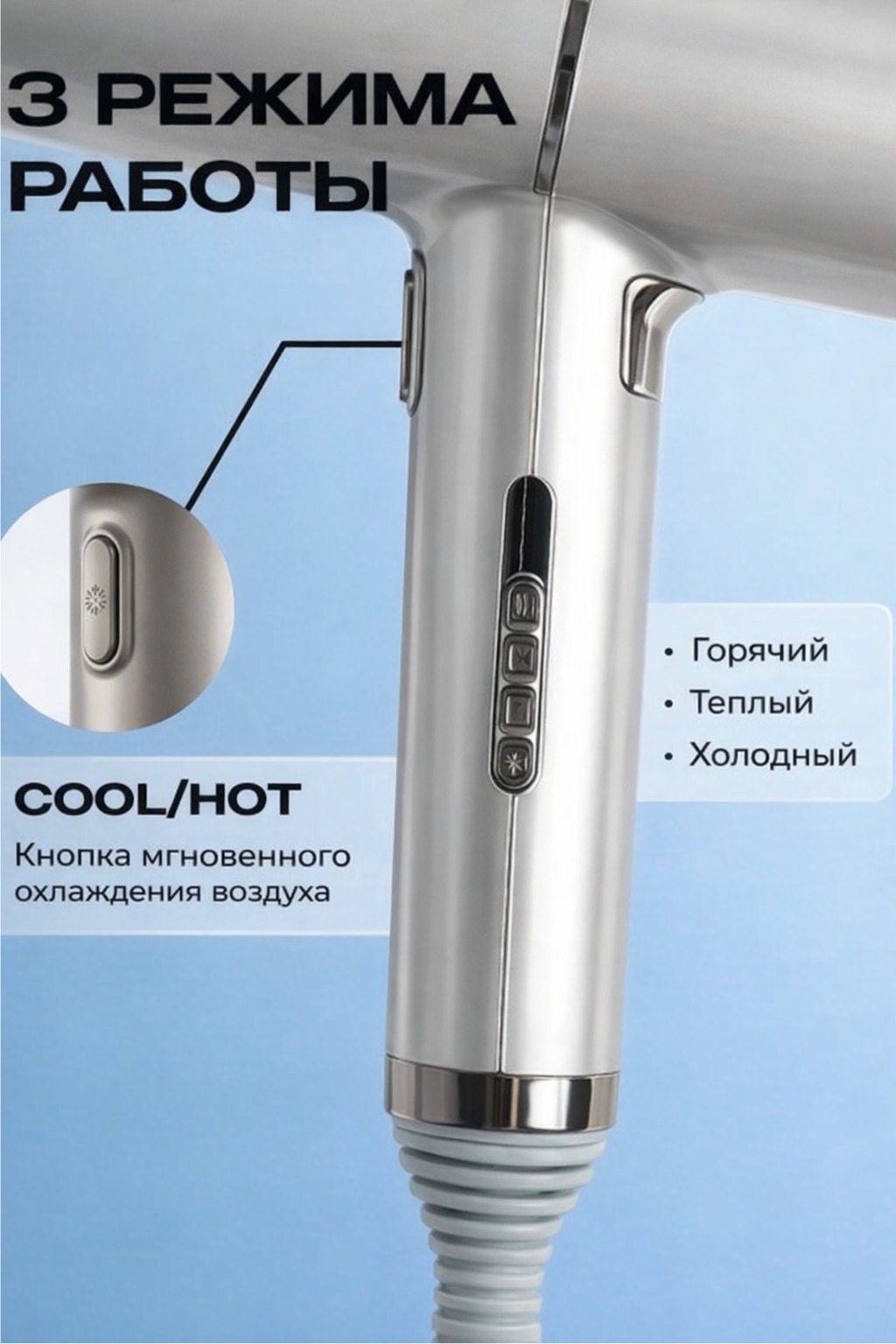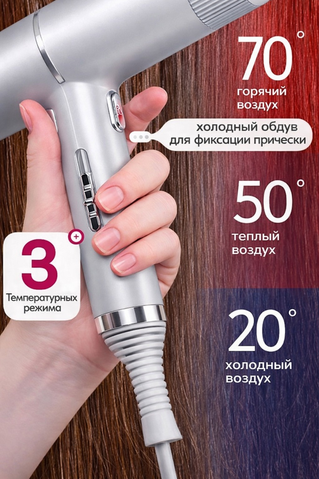 Фен для волос с ионизацией, холодным обдувом и температурными режимами — профессиональный уход каждый день