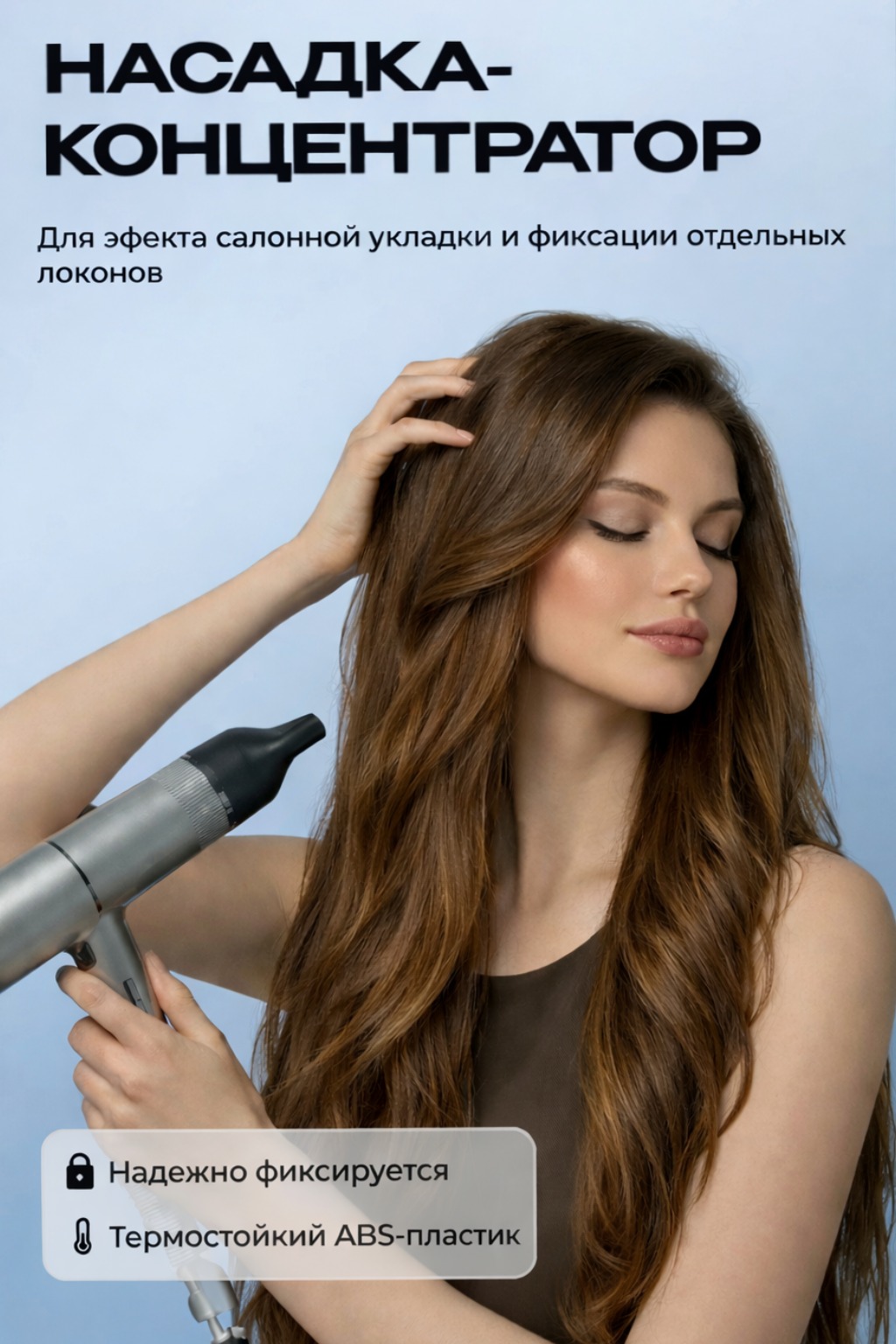 Концентратор в комплекте направляет поток воздуха для точной укладки и создания объёма у корней.