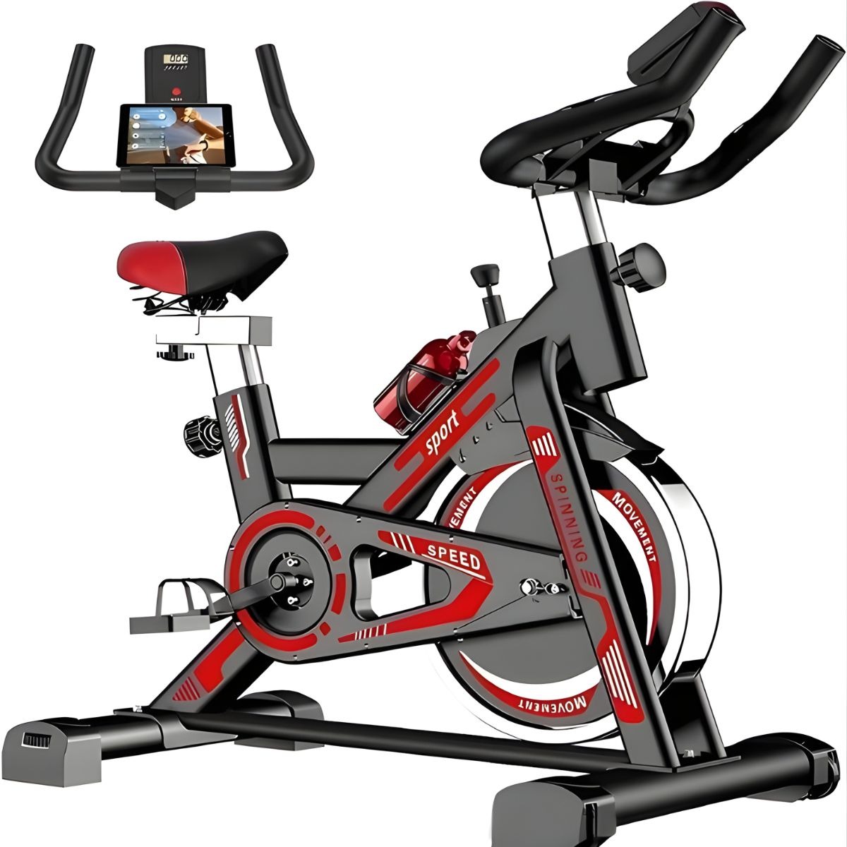 Этот магнитный велотренажер для домашнего использования оснащён прочной стальной рамой и выдерживает вес пользователя до 150 кг.