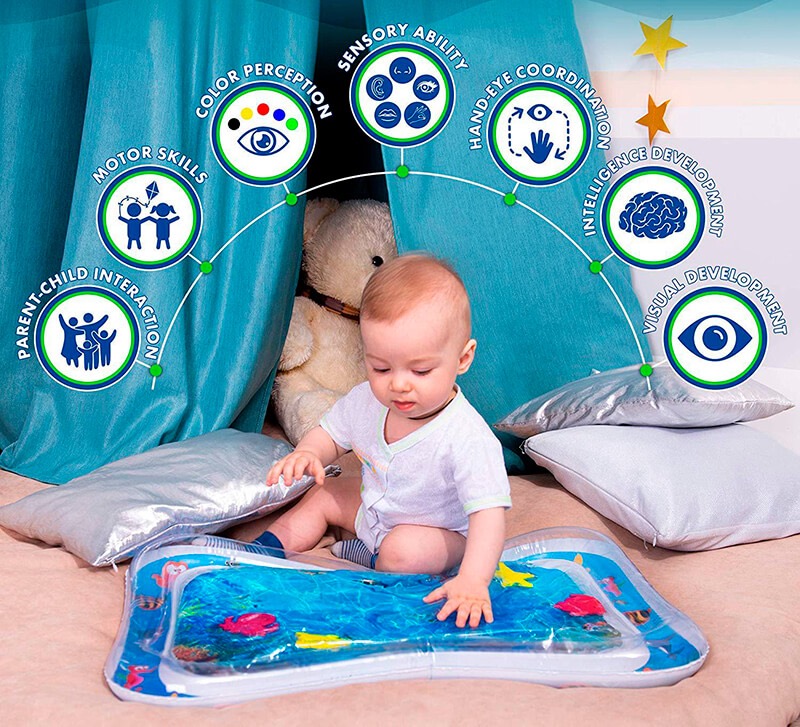 Коврик очень прикольный. С начало играла сама прям такой анти стресс. Материал прочный и приятный, как круг для плавания. Сзади имеется отверстие для заполнения воды, и отверстие выпустить воздух, как я поняла можно так же воду не заполнять, а просто надуть. Бока тоже надувются. Внутри рыбки несколько штук плавают)) Ребёнок счастлив, с ним и мы. Цена и качество порадовали.
