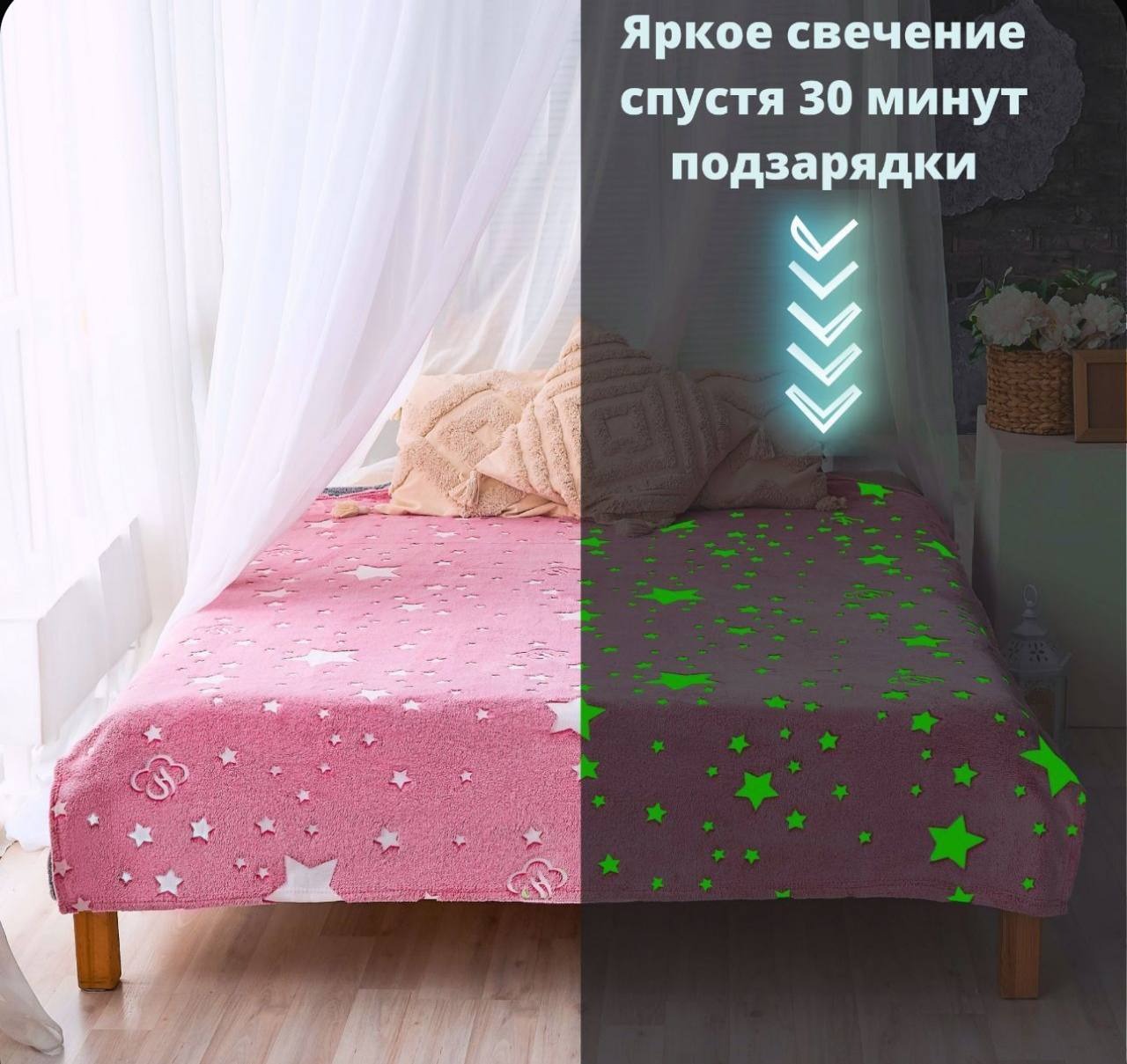 Одеяло необходимо поместить под естественный свет или оставить под светом, и тогда звезды на одеяле будут освещаться в темноте. Чем дольше он размещен, тем дольше будет светиться.Плед «День-ночь» — это уникальные и уютные изделия, которые приятно светятся в темноте. Их можно использовать как покрывало для кровати, придавая ей элегантный и новый облик.