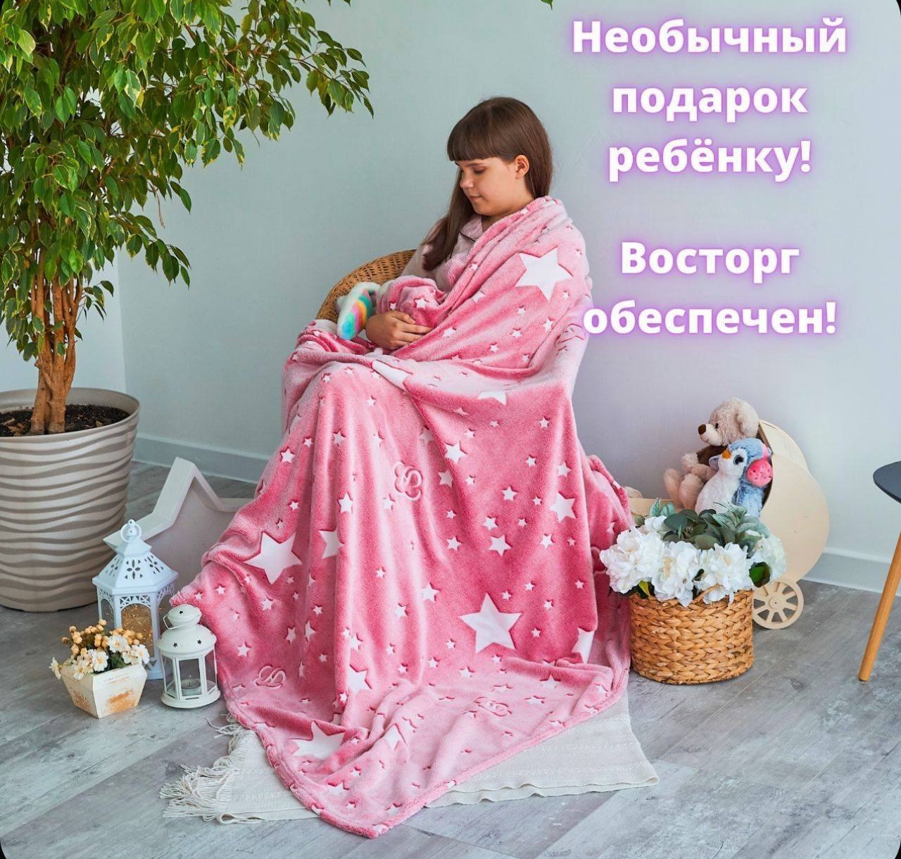 Детский розовый плюшевый плед, светящийся в темноте, размером 150x180 см