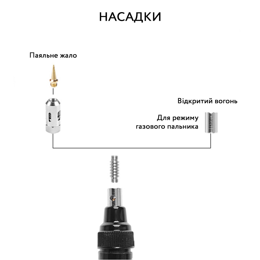 Портативний газовий паяльник із регулятором. Насадки у комплекті