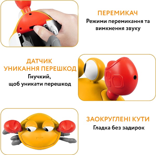 Інтерактивна іграшка "Краб з музичними ефектами" - це кумедний і розвиваючий друг, який радуватиме і викликатиме посмішку у вашого малюка.