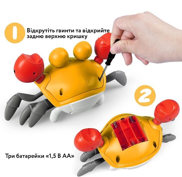 Батарейки не входять до комплекту.Познайомте свого маленького дослідника з музикою та танцями у компанії з цим веселим крабиком!