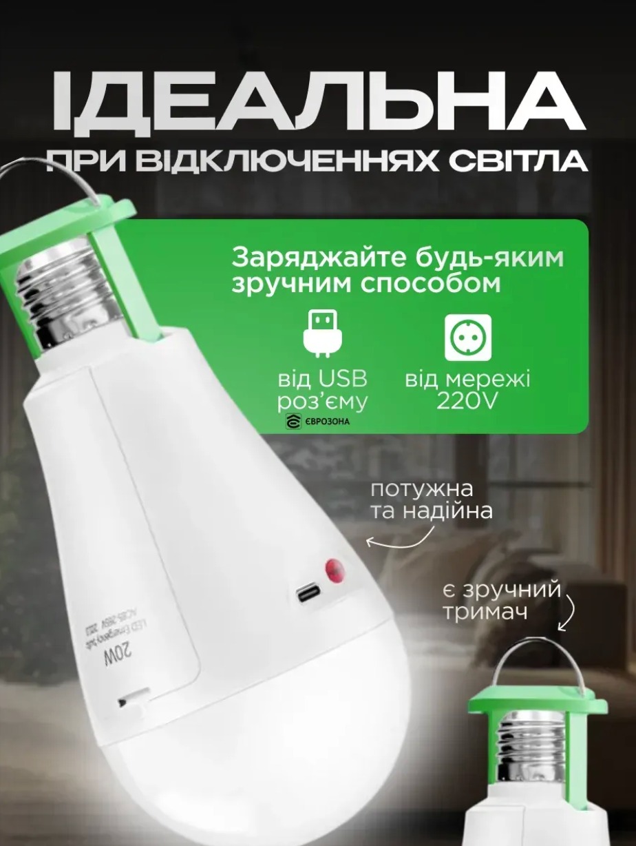 Лампочка з акумулятором світлодіодна в патрон з вбудованим акумулятором