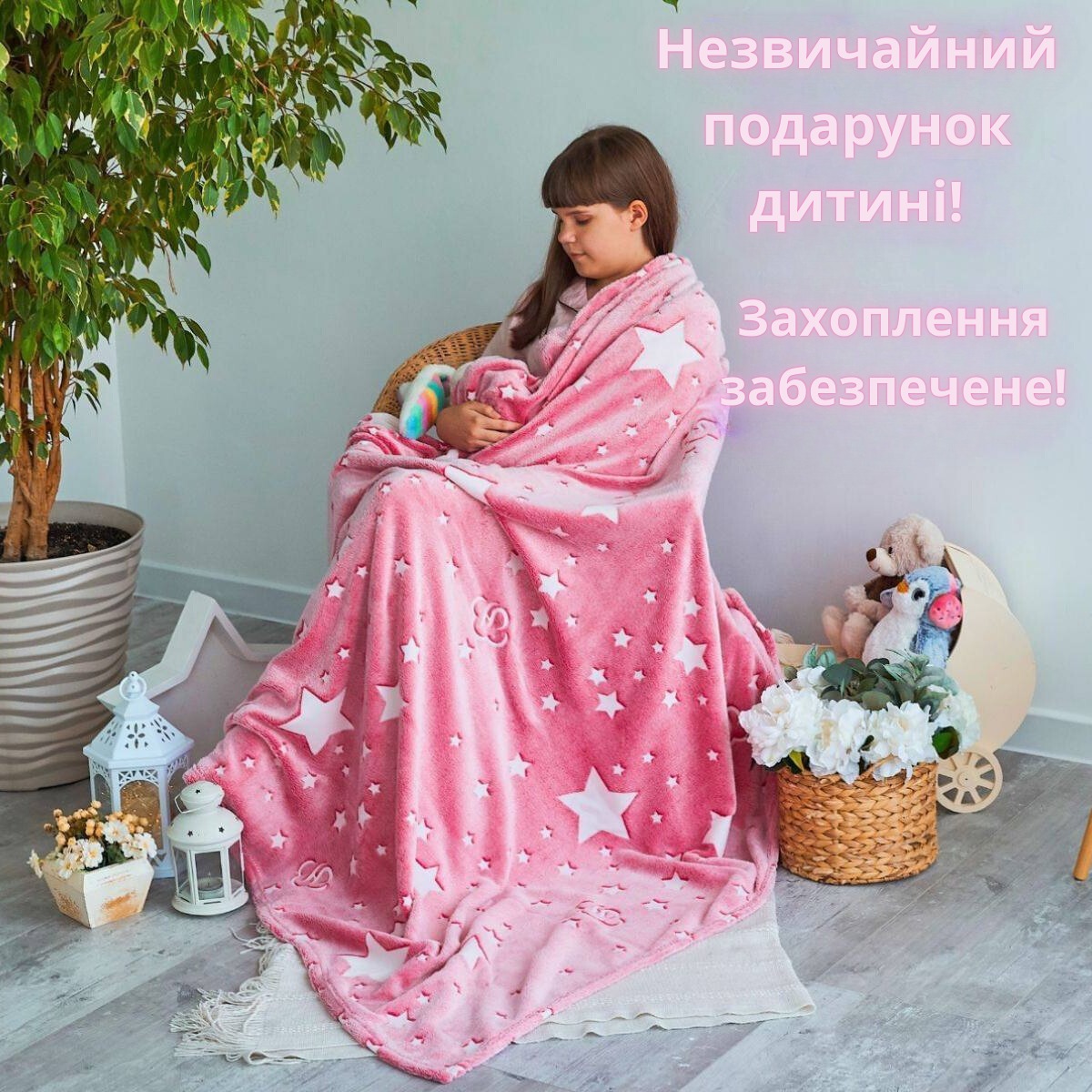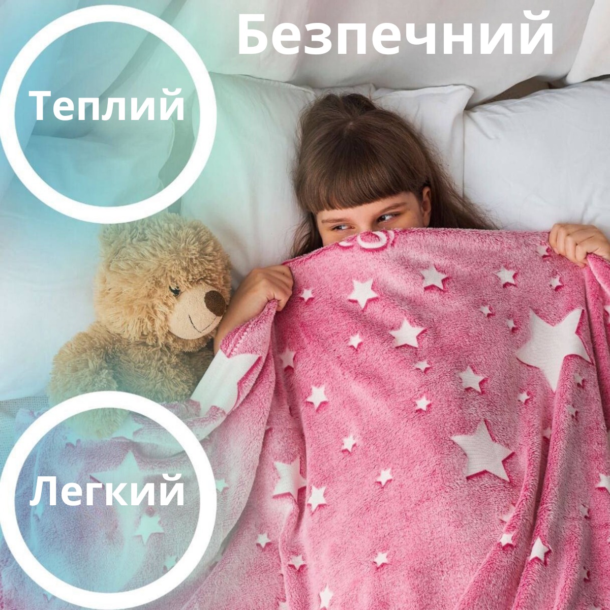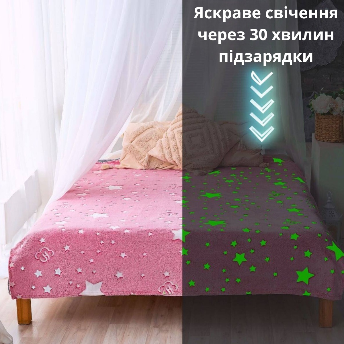 Дитячий рожевий плюшевий плед, що світиться в темряві, розміром 150x180 см